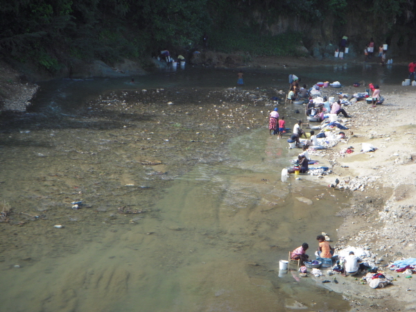 getting water from river.